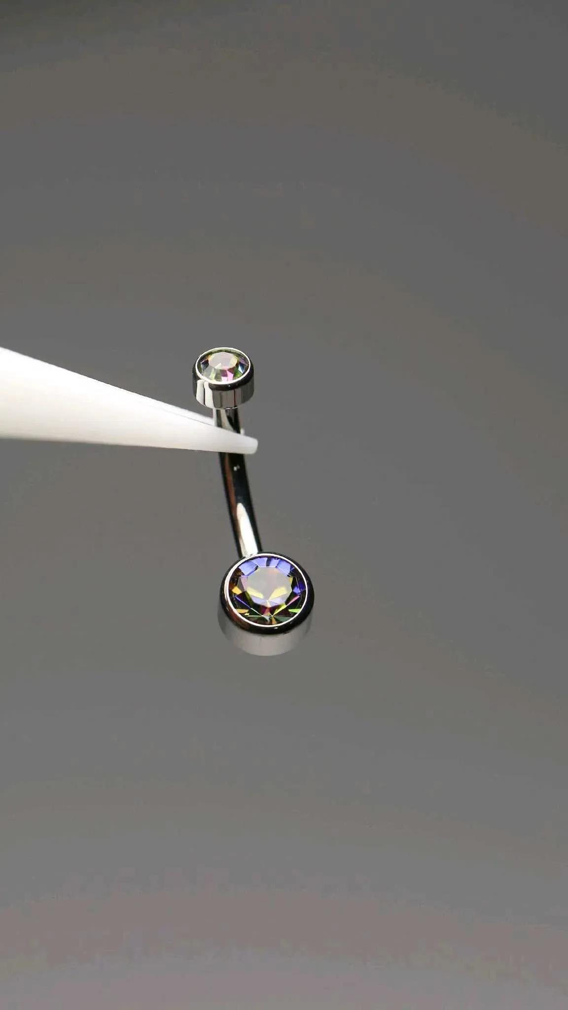 Piercing Navel (ombligo) de titanio grado implante con zirconias tornasol.